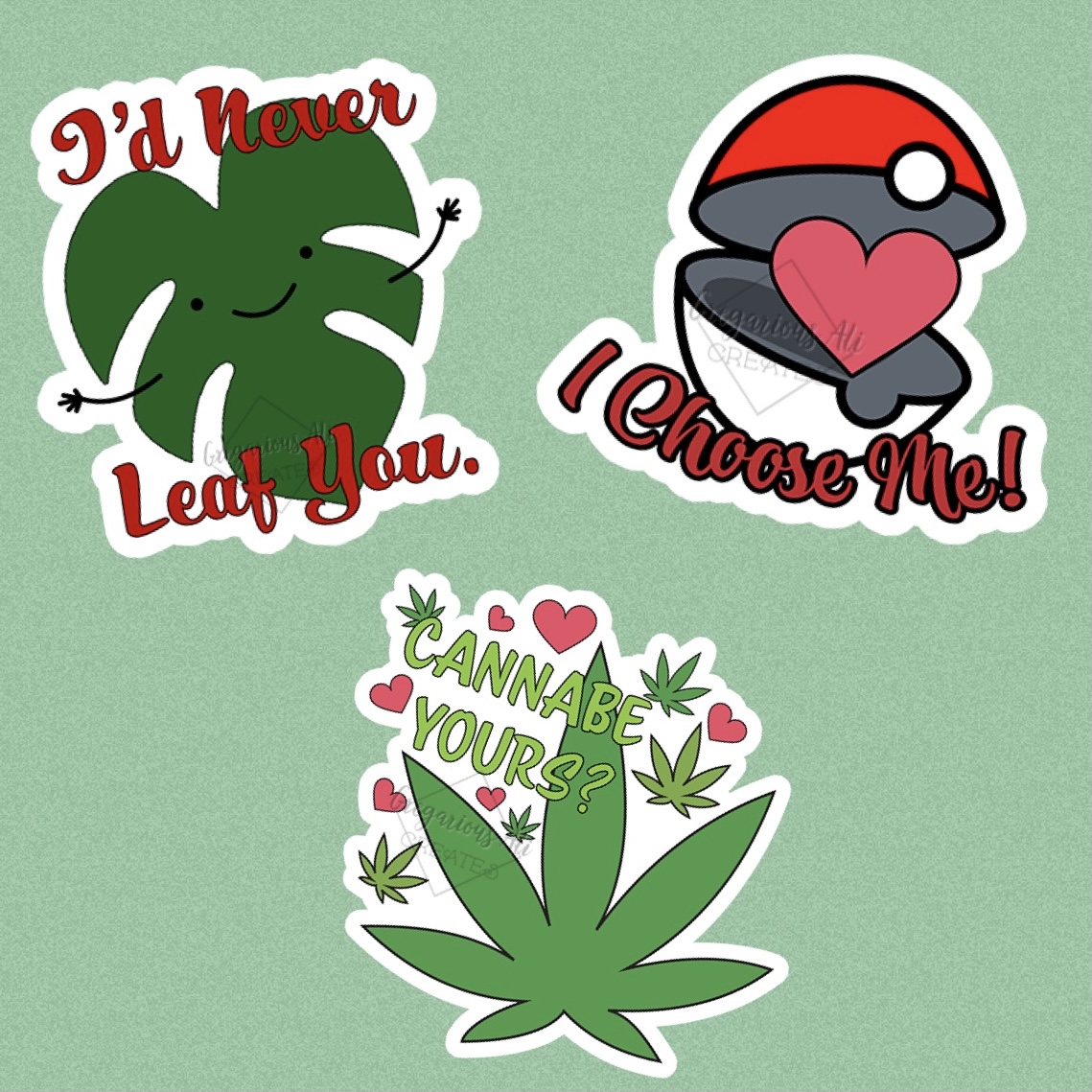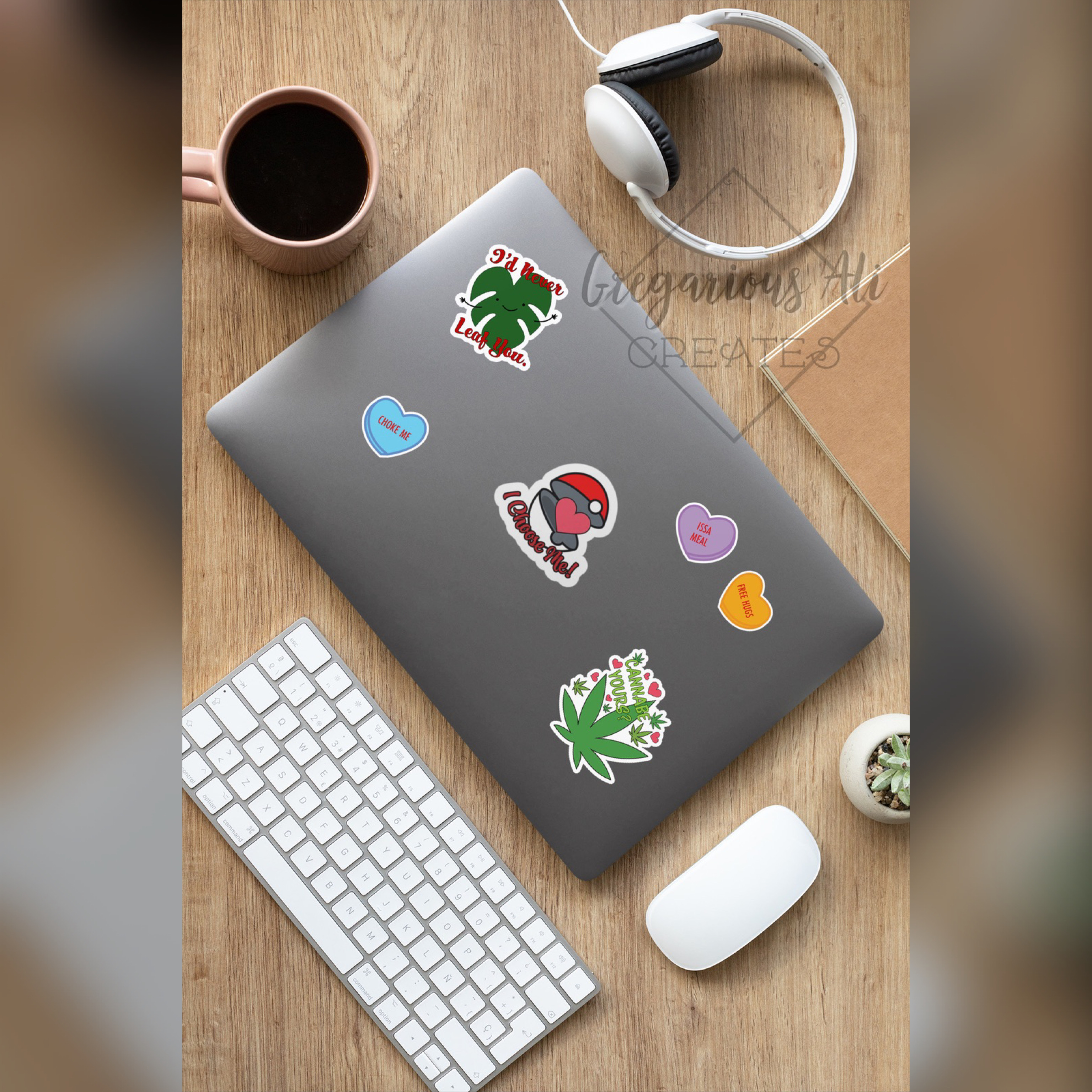 The Valentine's Day collection features 3 different greetings cards: "Quarantine Bae", "Pizza My Heart", and "Happy Valentine's _ay!". It includes an assortment of Candy Heart stickers with custom phrases, which you can purchase individually or in a set. Lastly, it includes stickers such as, my favorite, "I Choose Me" a declaration of self-love; "Cannabe Yours" for cannabis and pun-lovers, as well as "I'd Never Leaf You". You can place your stickers on any surface--I personally love to decorate my laptop cover and phone case with them!
